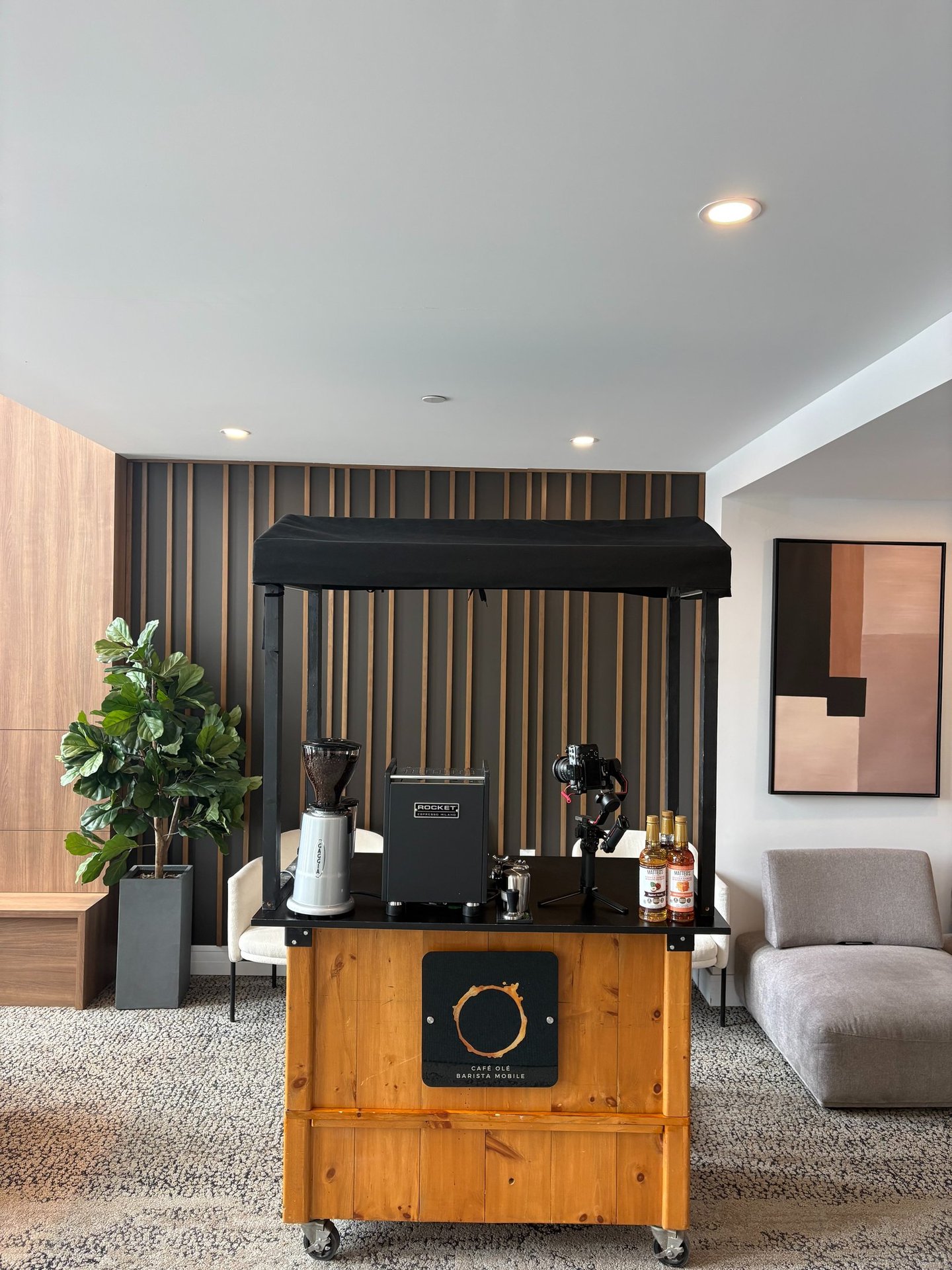 CaféOlé-Mobile apporte l'art du café directement à vos événements, avec un comptoir élégant et un service chaleureux.